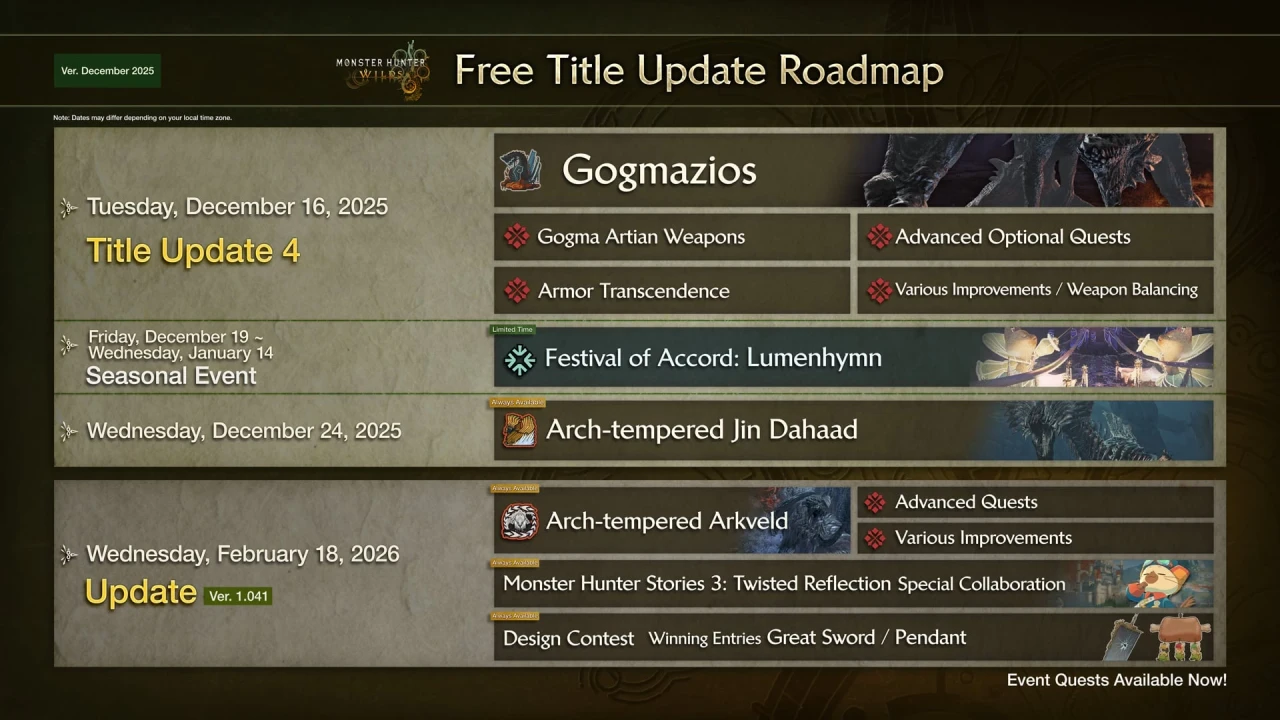 รายละเอียด Title Update 4 ของ Monster Hunter Wilds เตรียมอัปเดต 16 ธันวาคมนี้