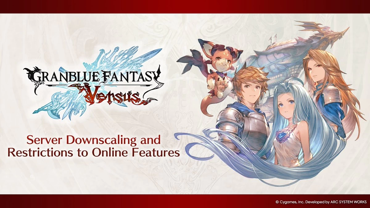 Cygames และ Arc System Works ประกาศว่าจะปรับลดการให้บริการฟีเจอร์ออนไลน์ของ Granblue Fantasy: Versus เกมที่วางจำหน่ายครั้งแรก..
