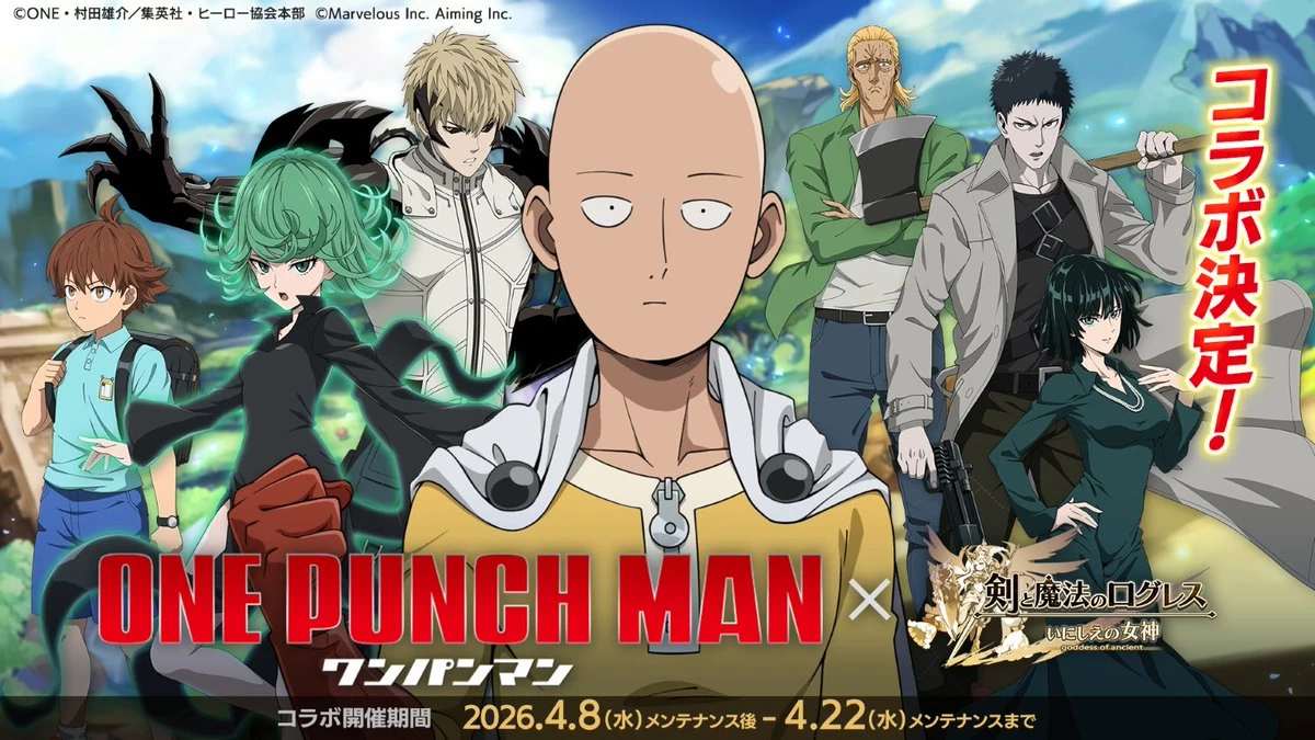อีเวนต์คอลแลบระหว่าง One Punch Man และ Logres เตรียมจัดขึ้นในวันที่ 8 เมษายนนี้ โดยภายในกิจกรรม ผู้เล่นจะได้พบกับตัวละครจาก O..