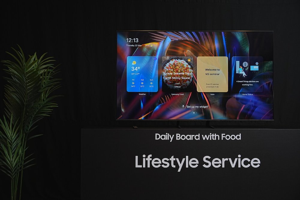 ความฉลาดของ Samsung Vision AI ในปีนี้ ยังต่อเนื่องมาถึงการเปลี่ยนโทรทัศน์ภายในบ้าน เพื่อให้กลายเป็น Daily Board หรือกระดานแสดงผลข้อมูลอัจฉริยะ ที่จะปรับเปลี่ยนตามผู้ใช้งานที่เดินเข้าใกล้ทีวี ด้วยการตรวจจับร่วมกับมือถือที่ใช้งาน หรือใช้คำสั่งเสียงอย่าง Hi Bixby เพื่อให้ทีวีรู้ว่าใครกำลังใช้งานอยู่