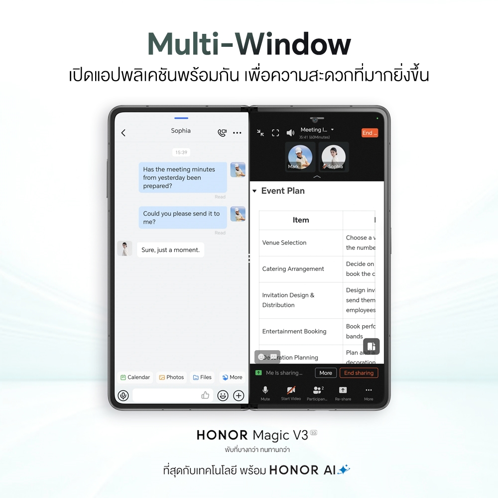 นายไมเคิล จิง ผู้อำนวยการ HONOR ประเทศไทย กล่าวว่า "เมื่อพูดถึงสมาร์ตโฟนแบบพับได้ ผู้ใช้จะรู้สึกกังวลหรือไม่มั่นใจในการตัดสินใจซื้อ เนื่องจากหลายคนมองว่าสมาร์ตโฟนแบบพับได้ไม่แข็งแรงเท่าสมาร์ตโฟนทั่วไป เนื่องจากมีกลไกการพับ ซึ่งอาจเสี่ยงต่อการแตกหักหรือเสียหายได้ง่าย รวมไปถึงคุณภาพกล้อง อายุการใช้งานของแบตเตอรี่หรือการใช้งานด้านอื่น ๆ ที่อาจไม่เป็นไปตามมาตรฐาน ส่งผลให้ตลอดระยะเวลาที่ผ่านมา HONOR จึงมุ่งมั่นพัฒนาผลิตภัณฑ์ที่มีคุณภาพสูงและเทคโนโลยีที่ล้ำสมัย เพื่อส่งมอบประสบการณ์และความพึงพอใจให้กับผู้ใช้มากที่สุด โดยล่าสุดประกาศเปิดตัว HONOR Magic V3 สมาร์ตโฟนจอพับที่ไม่เพียงแต่บางและทนทานที่สุดในโลก แต่ถูกออกแบบมาเพื่อแก้ไขทุก Pain Point ของผู้ใช้ ด้วยนวัตกรรมการออกแบบโครงสร้างหน้าจอทั้งภายในและภายนอกซึ่งใช้เทคโนโลยีวัสดุขั้นสูงที่ผ่านการทดสอบความทนทานอย่างเข้มงวด ทำให้เครื่องมีความแข็งแรงทนทานสูงสุด สามารถพับเปิดปิดได้หลายแสนครั้งโดยไม่เสื่อมสภาพ ไม่เพียงเท่านั้น HONOR Magic V3 ยังมาพร้อมกับ HONOR AI ที่ช่วยให้การถ่ายภาพและการใช้งานอื่นๆ มีประสิทธิภาพยิ่งขึ้น นอกจากนี้ ยังมีนวัตกรรมแบตเตอรี่ที่มีขนาดบางแต่ความจุสูง รองรับการใช้งานได้อย่างยาวนานตลอดวัน โดยไม่ต้องกังวลเรื่องแบตเตอรี่หมด HONOR Magic V3 จึงไม่ใช่แค่ “สมาร์ตโฟนพับได้” แต่คือ “สมาร์ตโฟนหลัก” ที่จะกลายเป็นส่วนสำคัญในชีวิตประจำวันของทุกคน ตลอดจนผู้ใช้จะได้สัมผัสประสบการณ์ใหม่ที่จะเปลี่ยนมุมมองเกี่ยวกับเทคโนโลยีไปตลอดกาล”