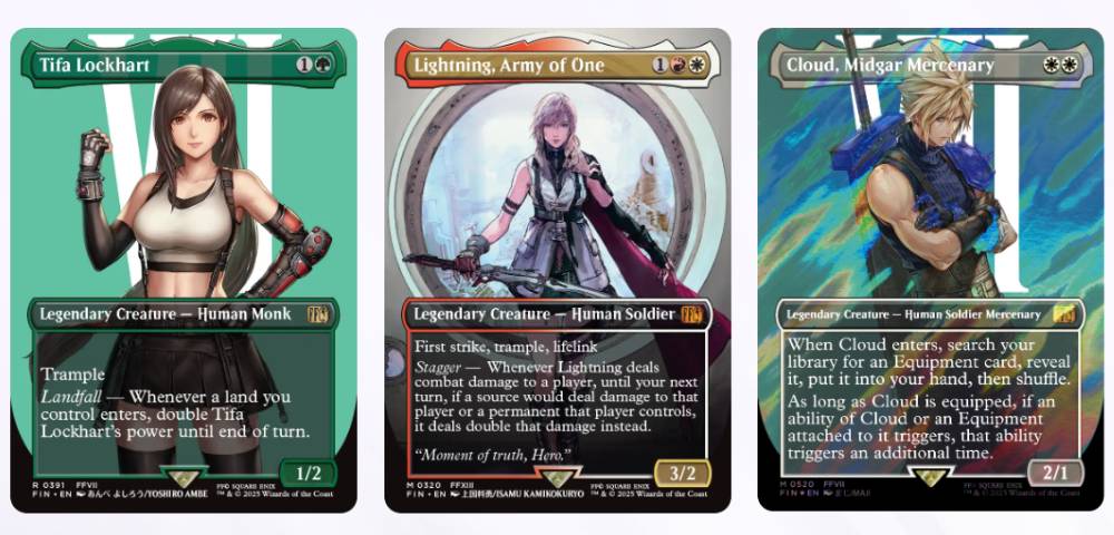 "สำหรับแฟน ๆ FF เราร่วมมือกับ Square Enix อย่างใกล้ชิดเพื่อถ่ายทอดความสมจริงของซีรีส์ออกมาในโลกของ MTG ด้วยความเคารพสูงสุด ขอให้สนุกกับอาร์ตและเกมเพลย์ที่เราเตรียมไว้"